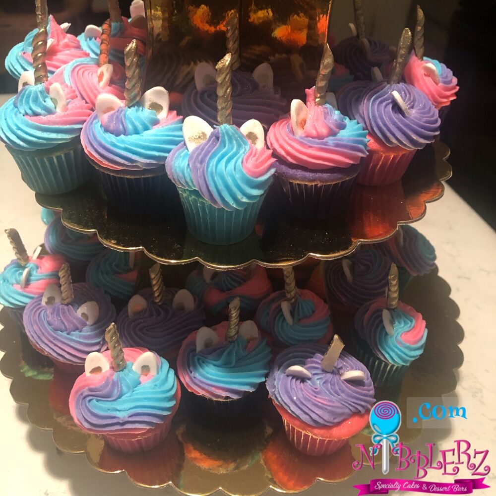 You can’t go wrong with this colorful Unicorn cupcake tower